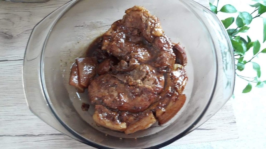 - Recouvrez le rôti avec de l’eau et rajouter la sauce soja et laisse cuire jusqu’à absorption totale de l’eau .